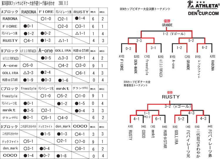 DENCUP2006年後期スタートしました。 今回、私は息子2人と教え子3人とコーチと出場でした。 ありがとうございました。 |