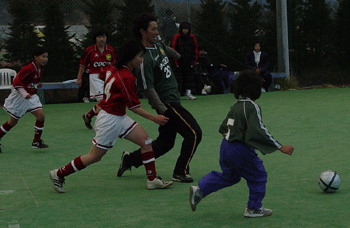 ![]() ![]() 子供とおやじの激突は回避、、、。 でも子供の得点は決まりました。 |