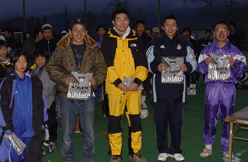 ![]() 北原 ほなみ(焼肉蹴球団)、福島 賢一 (A-one) 坂本 道紀 (ジャッカー電撃隊)、高桑 謙二 (NAPO.FC) 木村 智寿 (パイレーツ)