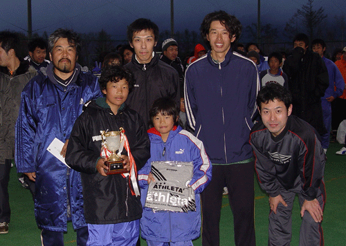 WOODS.FCさん対COCOさんというまさに夢の決勝戦となりました。(天皇杯でいえばヴァンフォーレ甲府vsザスパ草津と言ったところでしょうか、、、ファンの方ごめんなさい。) また、各チームさんにはそれぞれ独特のおやじがおり、各賞を差し上げるまでにはいきませんでしたが、このおやじ達がいるかぎりおやじカップはさらに今後も盛り上がっていく予感を感じた大会でもありました。 |