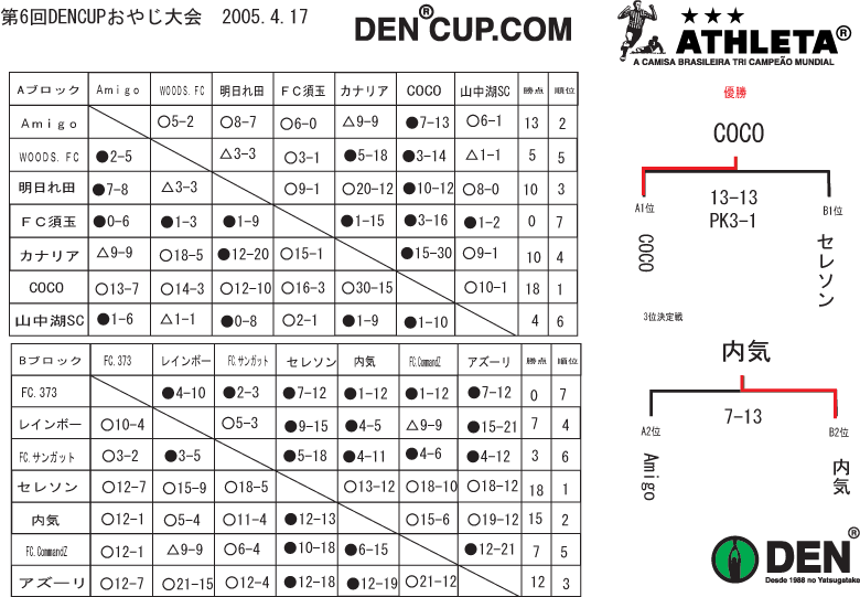 渡辺信一郎 (FC.CommandZ) 谷戸 翼 (アズーリ) 小池崚太 (明日れ田) 小池義樹 (内気) 小山 蓮 (Amigo)