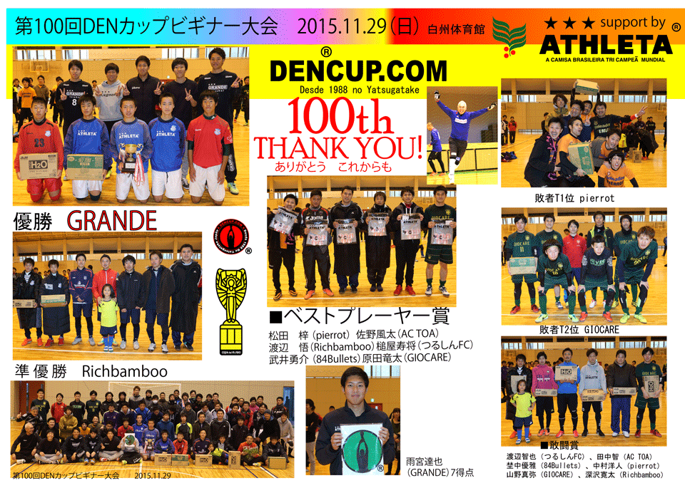 DENCUPもおかげさまで100回目を開催することができました。 優勝は私の教え子達が100回目の記念大会優勝に花を添えてくれました。 |