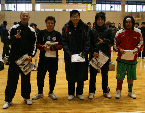 ![]() 名取智之 (コーヂーズ) 金丸 誠 (RUSTYふっと猿部) 坂本道紀 (ジャッカー電撃隊) 長田喜一 (Y・R・C・E) 小澤雄一 (スリオンテックフットサル同好会)