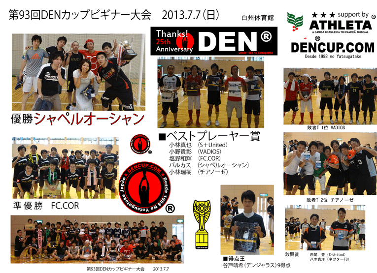 2013年梅雨明け宣言と同時に開催されたDENCUPですが今回も素晴らしいチームの皆さんにお集まりいただき一緒に楽しい時間をいただけました。 今回もみなさんの協力感謝しています。 |